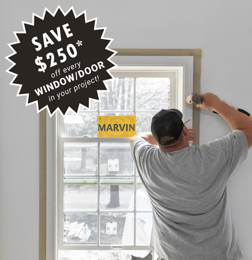* Installation to be scheduled between January/March 2026 at the discretion of Windows & Doors By Brownell. Discount based on number of openings. Homeowner will save $250 off each full tear-out installation of a new residential Marvin window or door installed by Windows & Doors By Brownell for savings up to $5,000. Offer does not apply to previous quotes and cannot be combined with financing, any other promotion or discount. Deposit must be placed by 8.15.2025 to qualify. See Windows & Doors By Brownell for complete details.